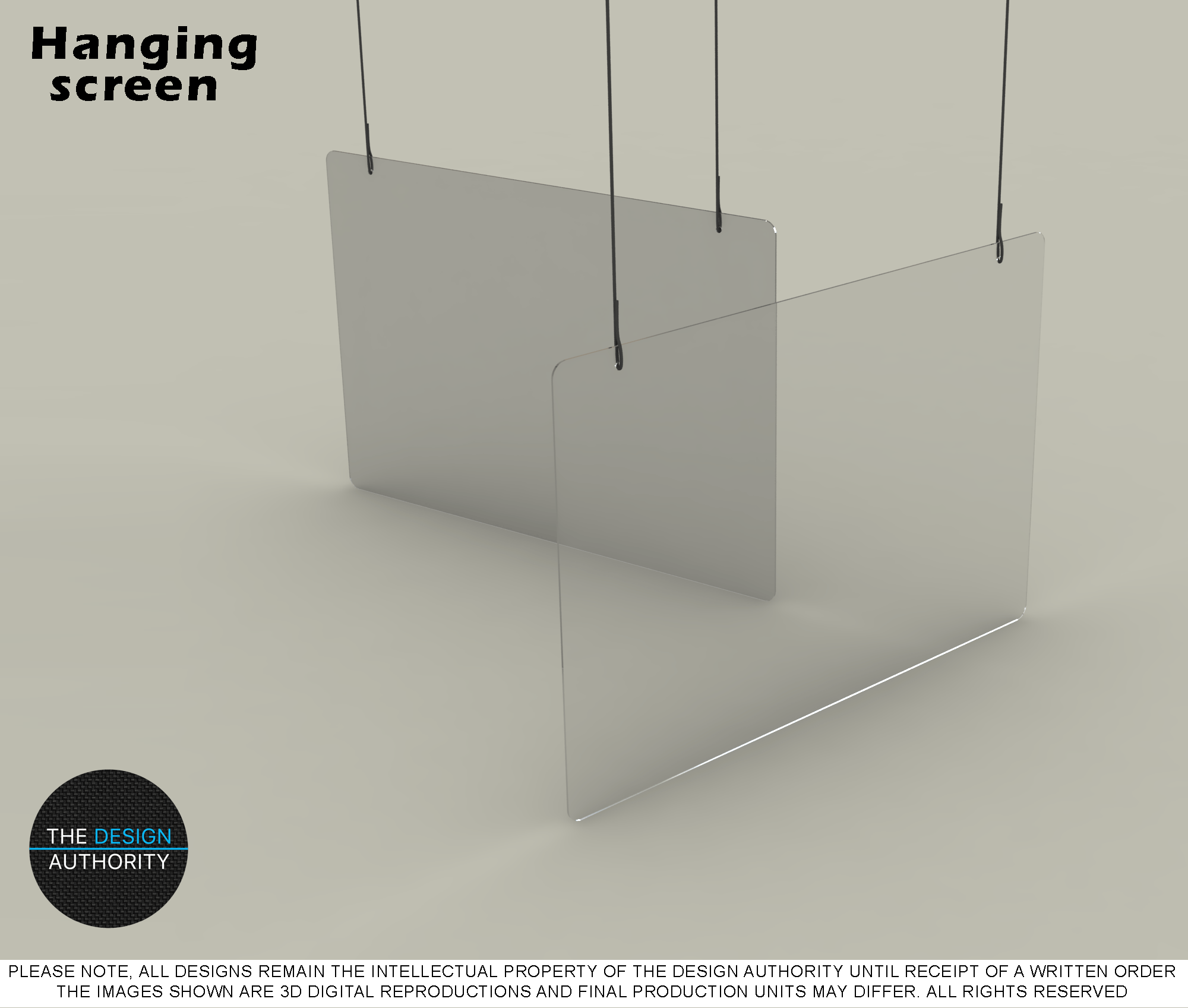 Clear Perspex hanging screen – any size available